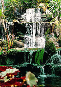 paths shaded by many large fig trees (Ficus species)